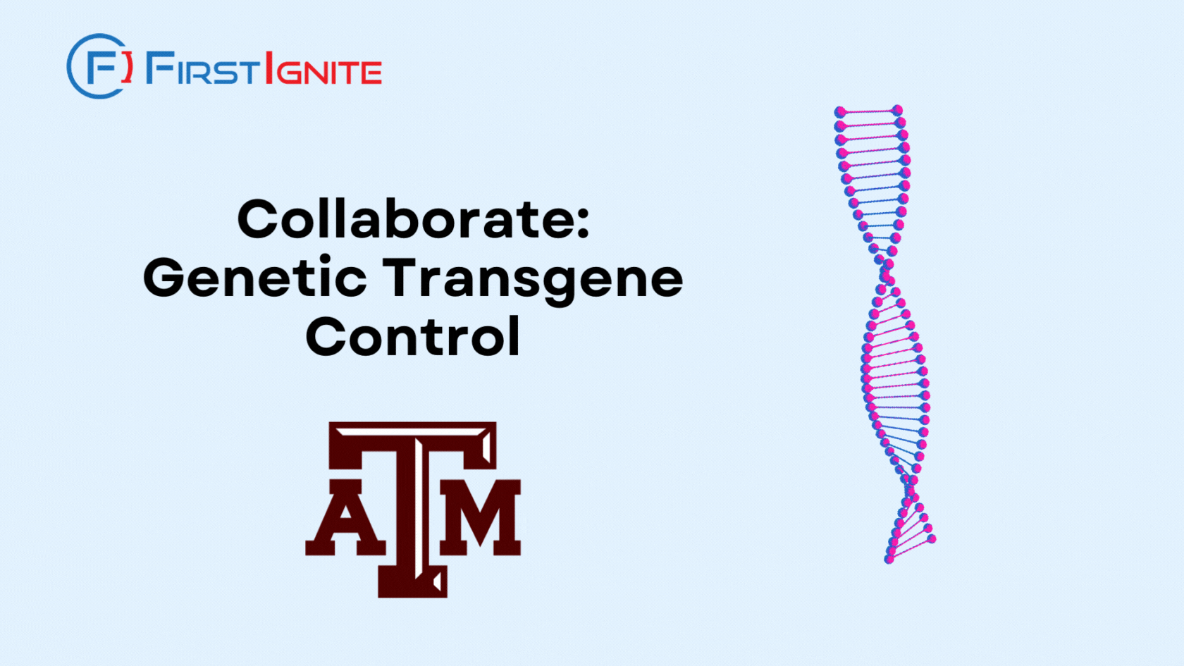 FirstIgnite is supporting the commercialization of Texas A&M University’s Agrilife Extension’s new technology for genetic transgene control. This technology is capable of using genetic strategies to control vector-borne diseases, invasive species, and unwanted species in plants. With this technology, genetic modifications in plant disease vectors can be made temporary for testing purposes, especially in controlling vector-borne diseases. Plus, genetically engineered plants could be programmed to eliminate the transgene from subsequent generations in effort to control downstream use of proprietary technology.
