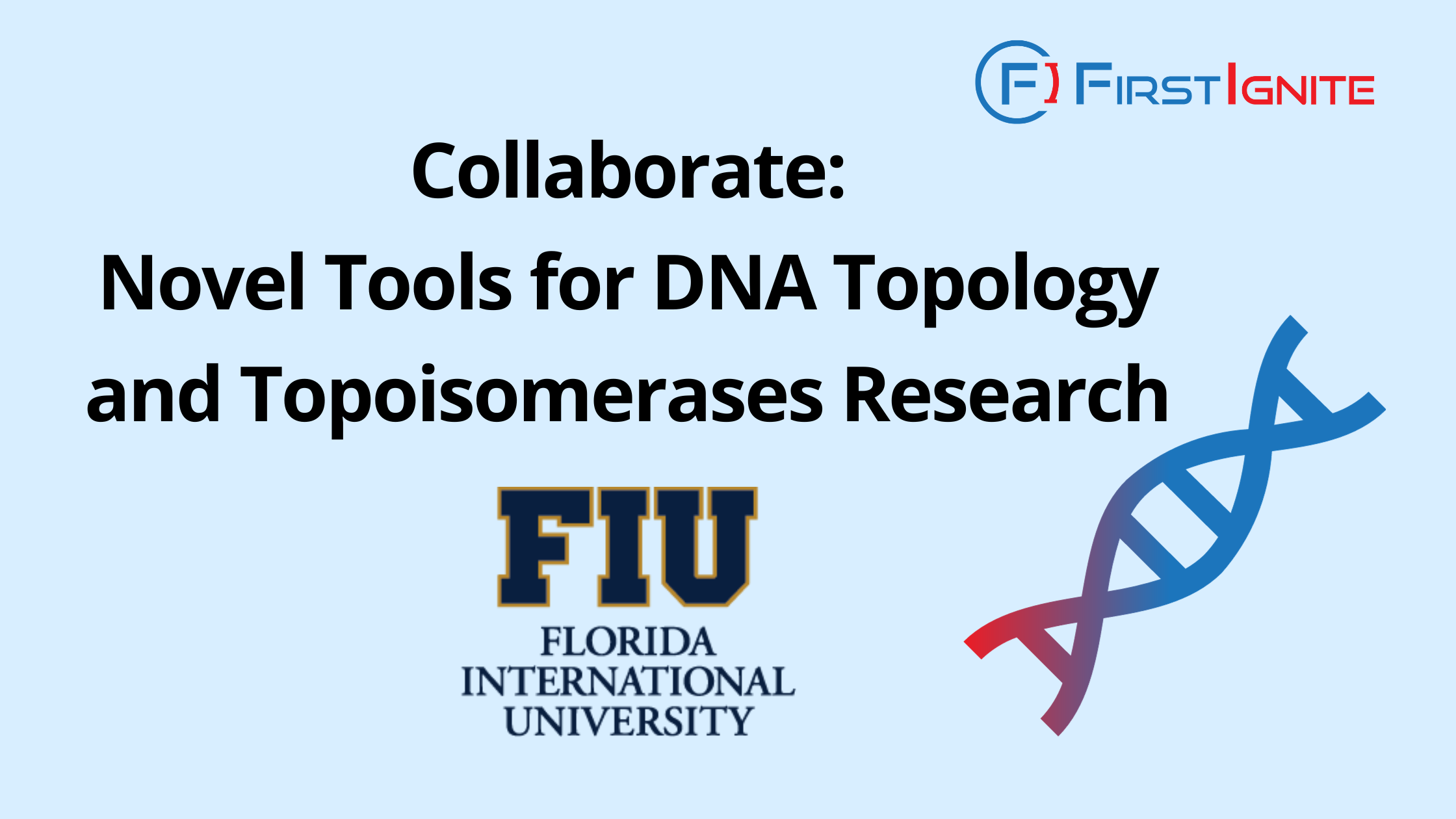 FirstIgnite is supporting the commercialization of Florida International University’s novel tools for DNA topology and topoisomerases research technology. This innovative technology comprises fluorescently labeled circular DNA molecules, offering a rapid and cost-effective approach to study DNA topology and topoisomerases using fluorescence resonance energy transfer (FRET).