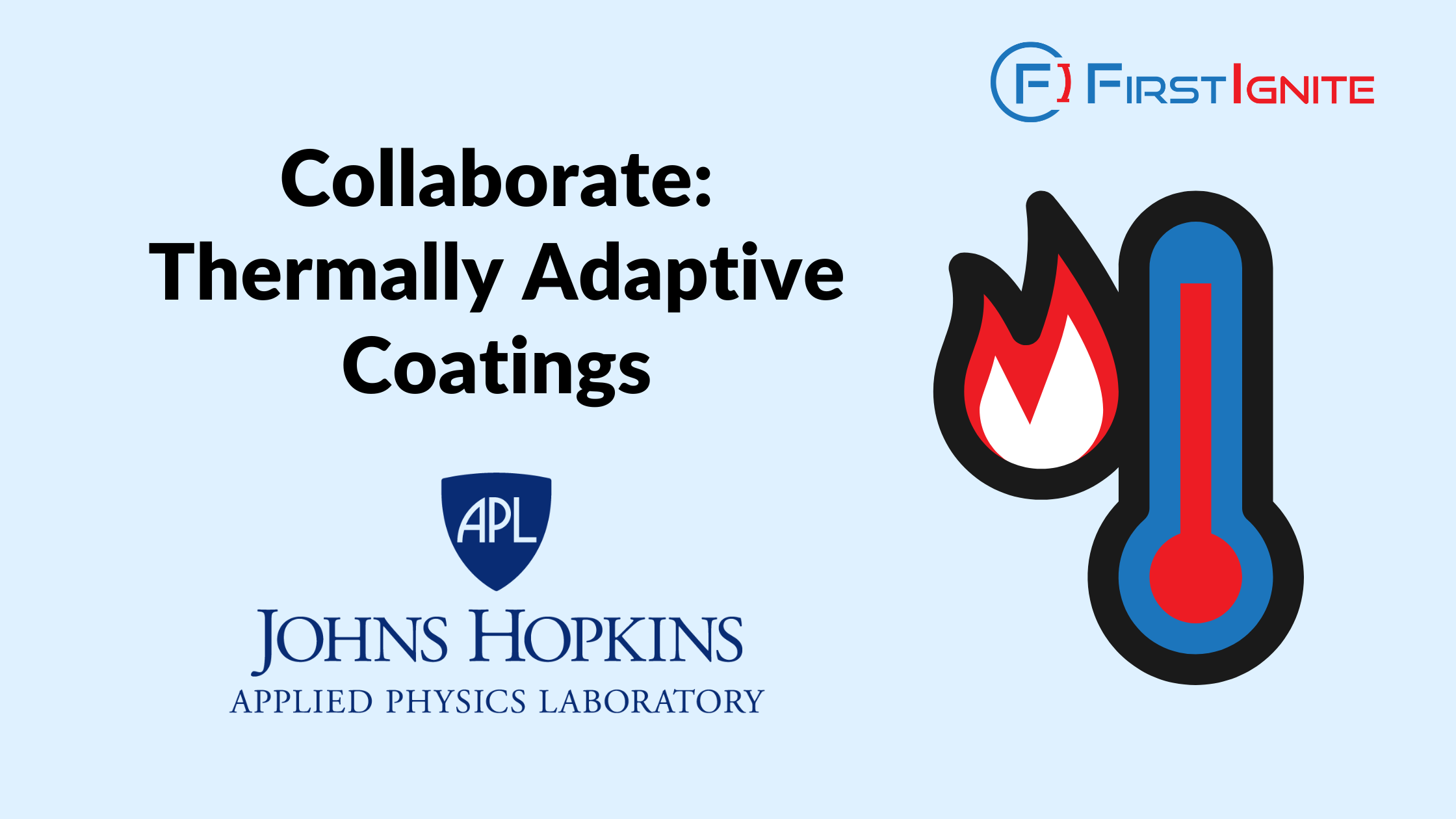 FirstIgnite is supporting the commercialization of Johns Hopkins University Applied Physics Laboratory’s thermally adaptive coatings technology, which can regulate temperature by controlling reflectance in specific temperature states, achieved through optimized thicknesses and dopant incorporation. This technology offers advantages such as improved infrared contrast in patterned samples compared to unpatterned counterparts and precise control of patterned dimensions and spacing through advanced fabrication techniques.